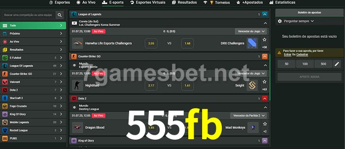 O 555fb oferece uma grande seleção de opções de apostas em e-sports com probabilidades competitivas